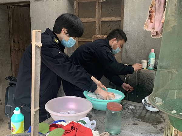 今天,机关党支部志愿者们听到最多的话就是“谢谢你们”。来到石梁镇麻蓬村结对帮扶员工的家中,年迈的父亲常年卧床,母亲体弱多病,还需照顾孙子孙女起居。志愿者们立即商量,聊家常、干家务、帮老人理发、清理水沟等有序分工,更给予了精神上的鼓励。