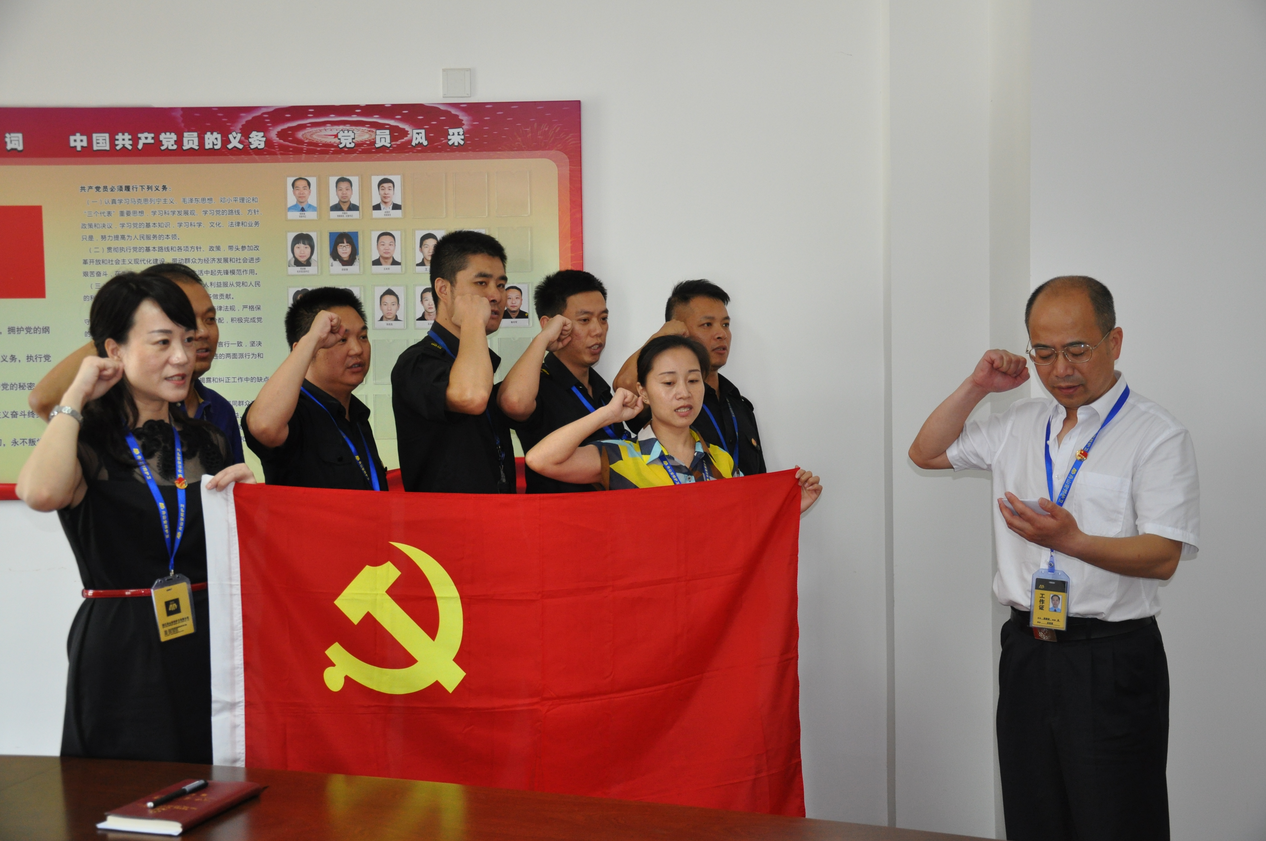 二是重温入党誓词:全体党员再次面向党旗庄严宣誓,重温入党誓词。重温入党誓词让每位党员心中升起对党的一种热爱、一种荣耀,更增添了对党的一份责任、使命。